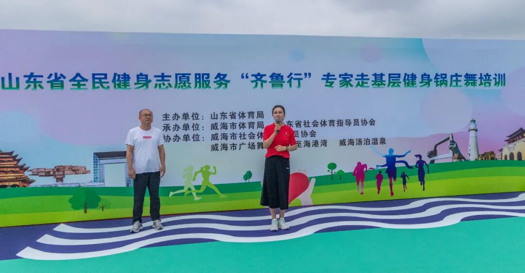为深入贯彻《全民健身计划(2021—2025年)》,推动全民健身与全民健康深度融合,弘扬优秀传统体育文化,铸牢中华民族共同体意识。7月16日下午,由山东省体育局主办,威海市体育局、山东省社会体育指导员协会承办、威海文登汤泊温泉酒店协办的全民健身志愿服务“齐鲁行”专家走基层活动在威海市至海港湾广场开展“健身锅庄舞(《再唱山歌给党听》)技能公益指导”培训。